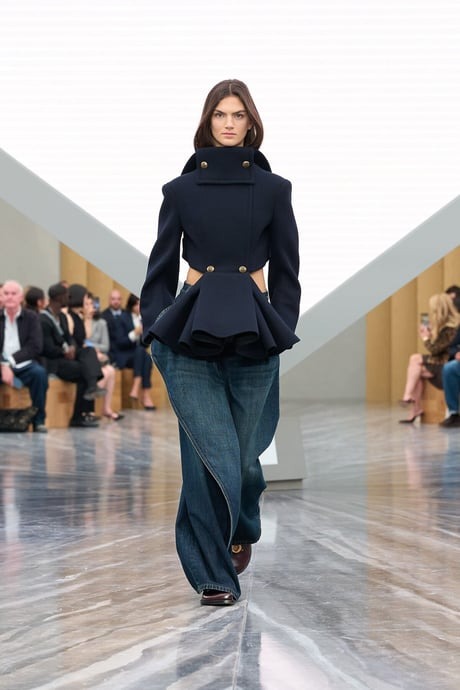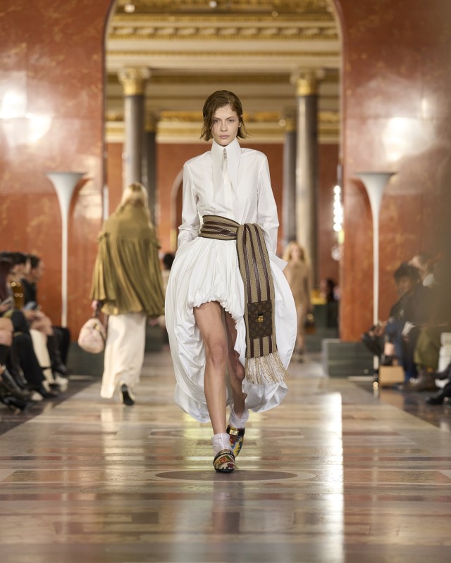 Zomer、Rabanne、Vaquera 皆以超大皮带扣成为造型焦点。腰带比以往任何时候都更受设计师们的青睞。它是每套服装的必备单品,并且被设计得格外醒目,如果可以的话,它还能凸显出极低的腰线,同时重塑轮廓。造型师们正在以一种有趣的方式重新诠释它。在Acne Studios ,腰带沿着裤脚一直延伸到裤管,而皮带裙有望成为2026年夏季的必备单品。