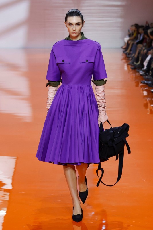 传统的波浪剪裁裙(Godet Skirt)如今焕发新生,以流畅弧度再度受到青睞。它有多种款式,有的布料带有大漩涡,有的紧身后展开成波浪形的花冠状,还有的则更短,像溜冰者一样。总的来说,裙子随处可见,铅笔裙、荷叶裙、气球裙、修身裙、开衩裙或拼接裙。许多裙子都带有精美的印花图案,或採用鲜艳的雕塑感色彩,并带有回收的流苏,就像Bottega Veneta的风格一样。