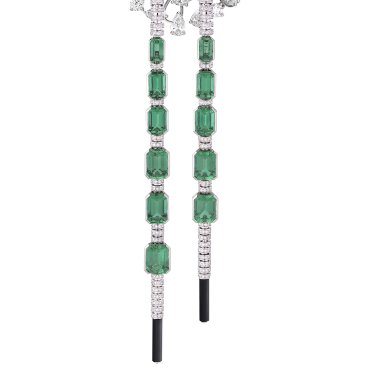 在由国际专家组成的独立评审团面前,十间珠宝品牌呈献其最具代表性的匠心之作。Grand Prix 以至高荣誉,表扬那些塑造此艺术形式的过去、现在与未来的创作者。香奈儿于10月25日在摩纳哥举行全球首届顶级珠宝大赏( Grand Prix de la Haute Joaillerie )荣获「年度最佳作品」殊荣,Sweater Prestige 项链採用18 K 白金、铂金、钻石、祖母绿与縞玛瑙打造,搭配11 颗总重约 37.18 克拉祖母绿形切割祖母绿。Sport 顶级珠宝系列颂扬自1920年以来深植于香奈儿品牌历史的运动风格,以运动风格来彰显女性的魅力。如今呈现的Sweater Prestige 项链,设计灵感源自运动衫与运动服饰的抽绳细节,以前所未见的形式,演绎优雅与卓越的极致结合。