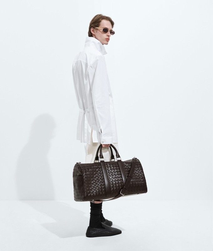 「无须 Logo,卓越自见」。Bottega Veneta 运用经典的 Intrecciato 皮革编织工艺,赋予了旅行包极致的韧性与延展性。随着使用时间增加,皮革会变得愈发柔软并散发独特光泽。对于不喜欢张扬、却对皮质触感有极高要求的旅行者而言,这款大容量波士顿包是低调奢华的极致体现。(Intrecciato Duffle,NT$ 189,900)