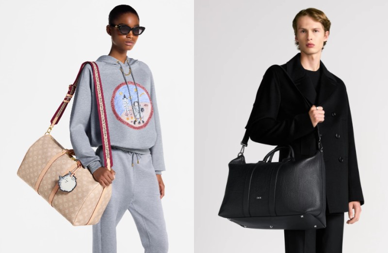 专为追求摩登感与都市洗练风格的旅行者设计。Dior迪奥的 Weekender 系列以经典的 Oblique 提花帆布打造,结构感极强,即使装载重物也不易变形。其厚实的皮革提把与可拆卸的宽感肩带,让你在手提与肩背之间切换自如,完美平衡了高级时装与功能性。