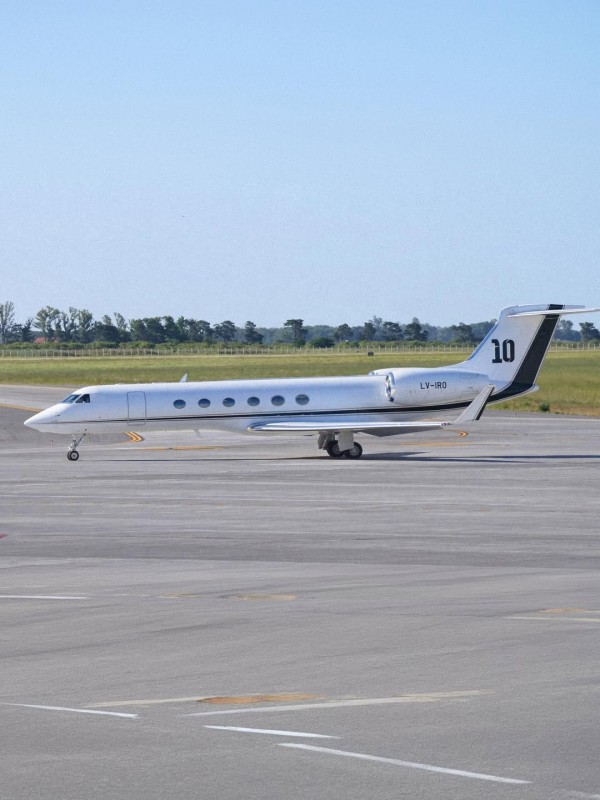 梅西所拥有的这架私人飞机型号为 Gulfstream V 湾流五代,这是一款以长程飞行与稳定性着称的高级商务机。在阿根廷註册,註册号码为LV-IRQ,2004年制造,于2018年购入。飞机外观简醒目的特徵莫过于垂直尾翼上巨大的数字「10」,这象徵着他在巴塞隆纳、阿根廷国家队以及现今在迈阿密国际队最具代表性的球衣背号。对球迷与飞机迷来说,只要一看到尾翼上的10,就知道这架飞机属于GOAT。