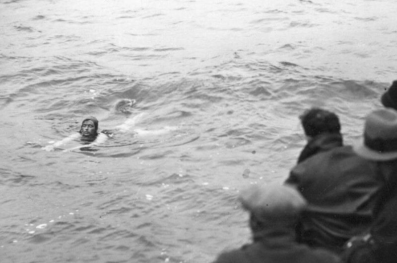 ▲1927年雪恥之游中,Gleitze將蠔式手錶戴在頸上浸泡冰冷海水逾十小時,證明手錶防水可靠。Source:Sotheby's