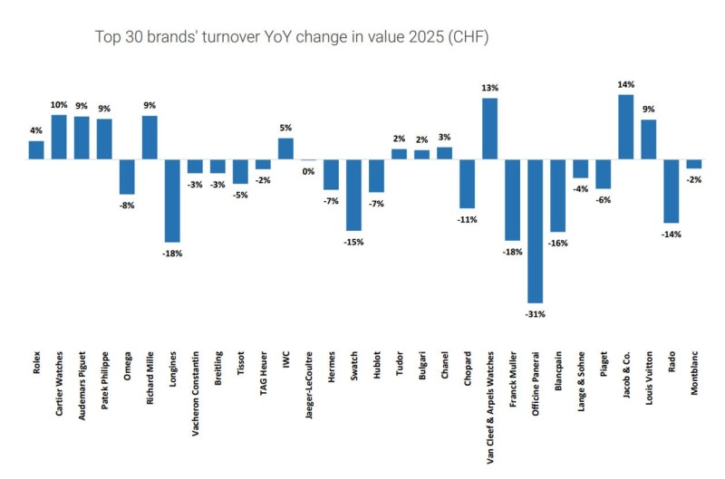▲JACOB & CO.在整體市場走弱情況下,成長幅度仍領先卡地亞、愛彼與百達翡麗等傳統巨頭,成為年度表現最亮眼品牌之一。