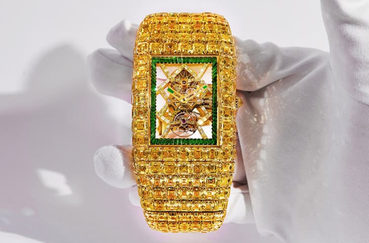 在產品面,JACOB & CO. 2025年一口氣推出超過30款新作,並開闢兩個全新系列,核心依舊圍繞品牌最具辨識度的超複雜結構與視覺張力,近年力作例如與BUGATTI合作的Bugatti Tourbillon,將超跑引擎元素融入機芯架構;還有結構張狂的Astronomia Four-Axis Tourbillon,以四軸陀飛輪展現機械極限,至於鑲嵌217克拉黃鑽的Billionaire Timeless Treasure,則再次把「珠寶錶」推向戲劇化高度。